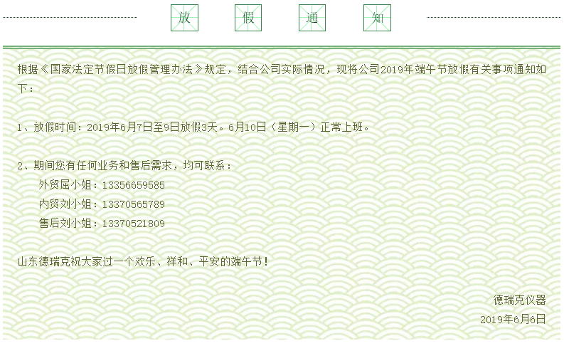 放假通知 ‖ 山東德瑞克祝大家過(guò)一個(gè)快樂(lè )、祥和、平安的端午節!